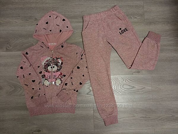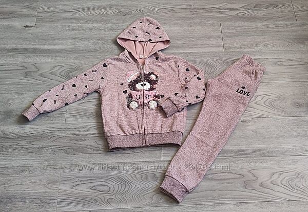 Костюм на ріст 122 (6-8 років). Угорщина. Фірма SDЯкісний костюм. Склад тканини 93% котон, 7 % еластан. Колір - пудра, рожевий не яскравий, спокійний.
