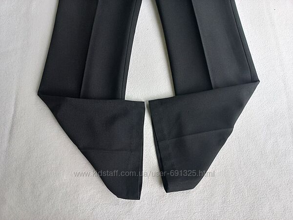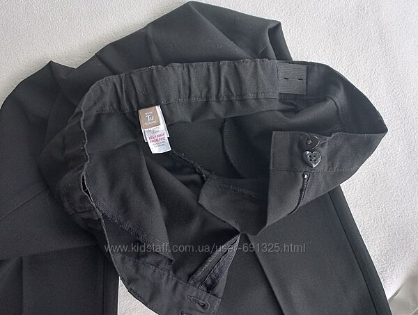 Пропоную чорні класичні шкільні штани для дівчинки на 11 років, від TU. Матеріал 35% поліестр, 65% віскоза, костюмний, щільний. 2 кармана. Вживані мало, акуратно, стан відмінний, дивіться фото.Довжина штанів по боку 92 см, кроковий 67 см, ширина талії максимум 35 см, є утяжка, ширина стегон 44 см, ширина штанини зверху 24 см, внизу 19 см; посадка спереду 25 см, ззаду 31 см.