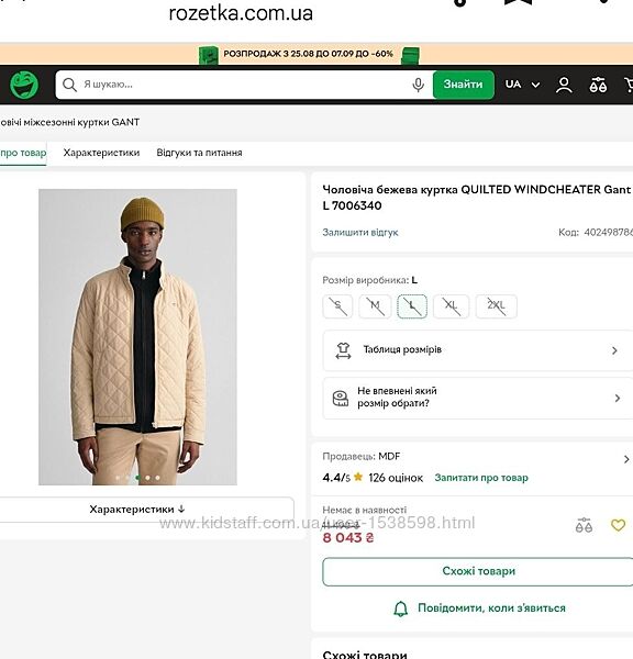Подробное описание: Мужская куртка Gant Quilted Windcheater Оригинал