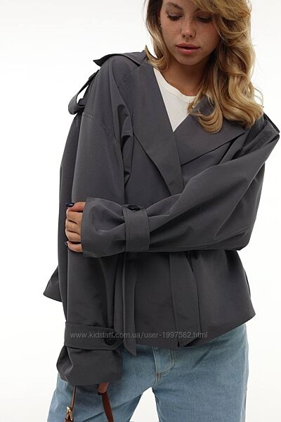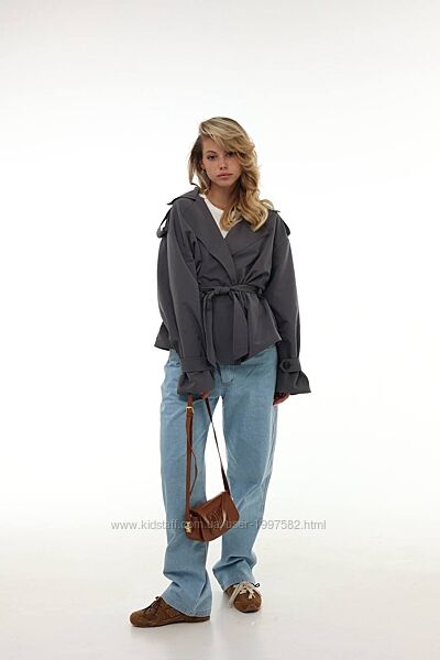 Інший верхній одяг нашого магазину Ви можете переглянути за посиланням: https://www.kidstaff.com.ua/user-anno-1997582/sect...Стильний укорочений тренч із поясом на талії, який підкреслює силует.