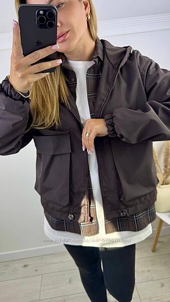 Куртка вільного прямого крою на підкладі, з капюшоном (з фіксаторами, які можна затягнути), з двома карманами, манжет рукави на резинці, понизу також є фіксатори, які затягуються на резинці