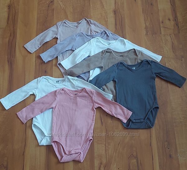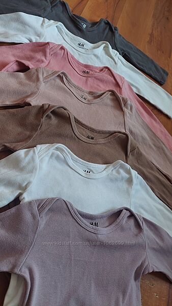 7 боді з довгими рукавами H&M 2-4міс на 62см.