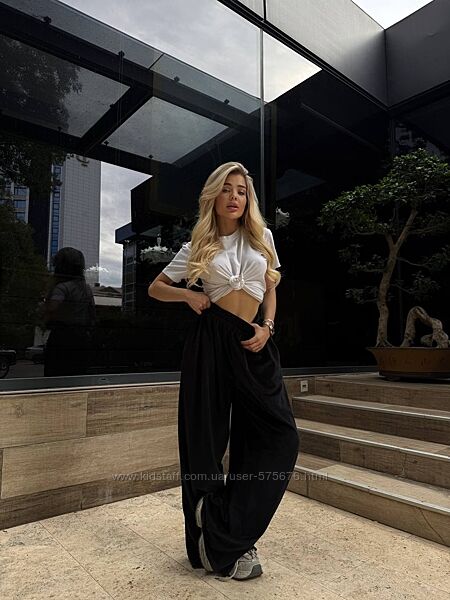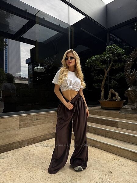 Те,що завжди актуально-обʼємні штани в стилі оверсайз . Штани на резинці в талії, приємна мʼяка тканина.