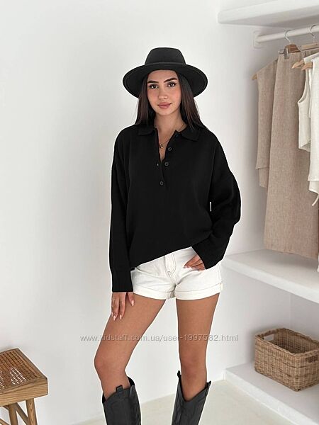 Подробное описание: Трикотажний джемпер з мяким коміром. Вільний крій та трикутний виріз на гр