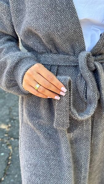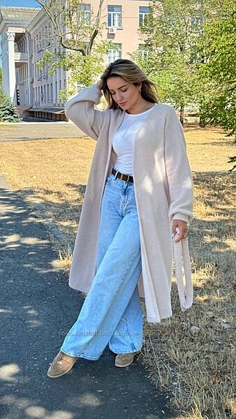 Кардиган подовжений, рукав широкий, плече спущене, пояс йде окремо, не пришитий, тканина тягнеться