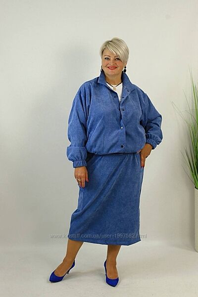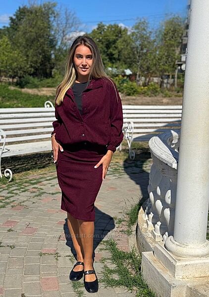 Подробное описание: Костюм. Це стильна двійка спідниця і куртка на кнопках з мікровельвету, що