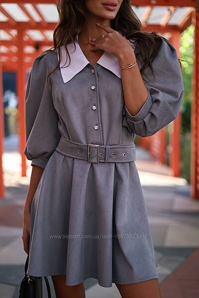 Подробное описание: Класична сукня з білим комірцем Стильна міні-сукня з мякого екозамшу, яка