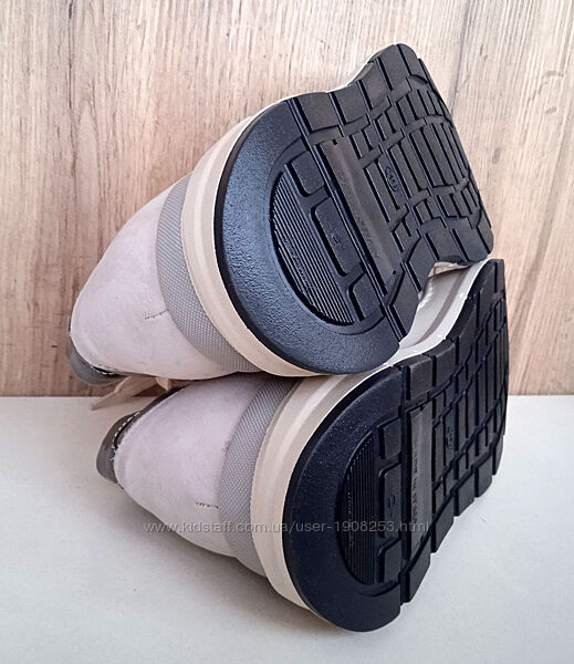 Матеріал: зовні натуральний нубук і міцний взуттєвий текстиль, всередині натуральна шкіра. На задниках є жорсткі вставки, що допомагають підтримувати стопу у правильному положенні, і поролонові валики, що попереджують натирання. Устілки виймаються, натуральні шкіряні, мають ортопедичні супінатори і пружні амортизуючі основи.