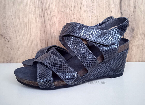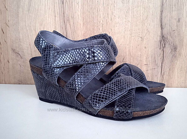 Подробное описание: Нові шкіряні босоніжки жіночі на липучках і танкетці, на вузьку ногу, р. 37