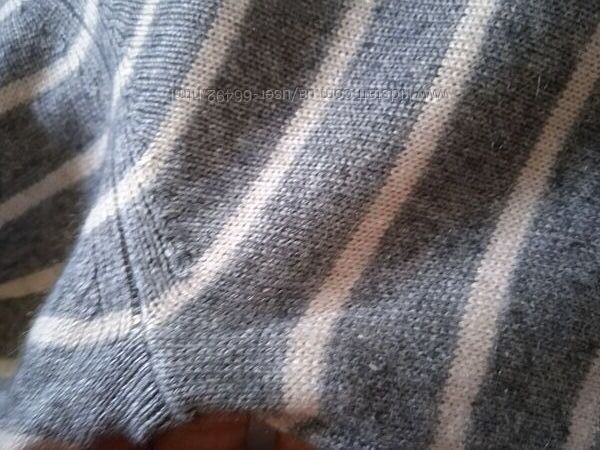 Ніжний, шовковистий, дуже м´який трикотаж. Не темний сірий колір зі смужками тілесного кольору. Рукав вкорочений, десь 6/8.