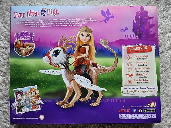 Лялька кукла Евер Афтер Хай Еппл Эппл Уайт Вайт Ігри драконів Ever After High Apple White Dragon Games оригінал нова в упаковці з драконом 1600грнОплата на карту