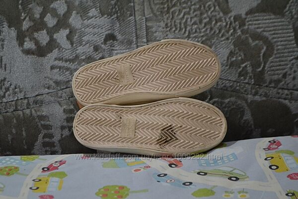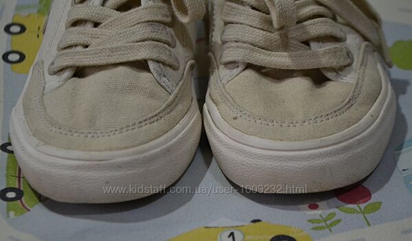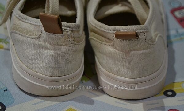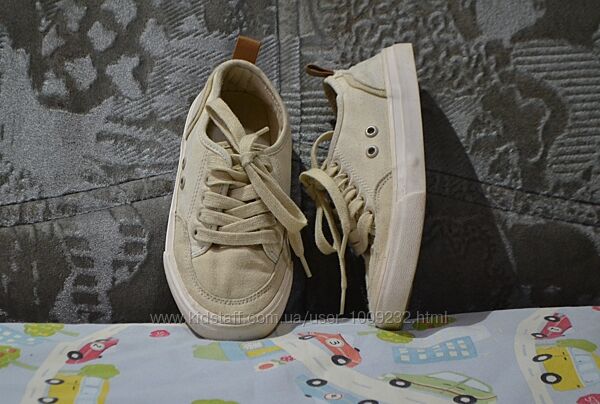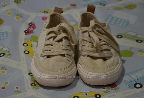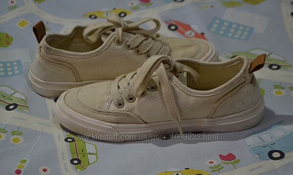 Кремові кеди унісекс – підійдуть і на хлопчика, і на дівчинку – від бренду Zara. Б/у у гарному стані. Розмір 30. Довжина устілки – 19 см, на ніжку 18,5 см. На шнурках. НЮАНС: непримітні плямки назадниках і біля носка лівого кеда (фото).