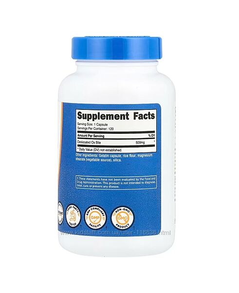 # Nutricost, Бычья желчь, 500 мг, 120 капсулОПИСАНИЕ: