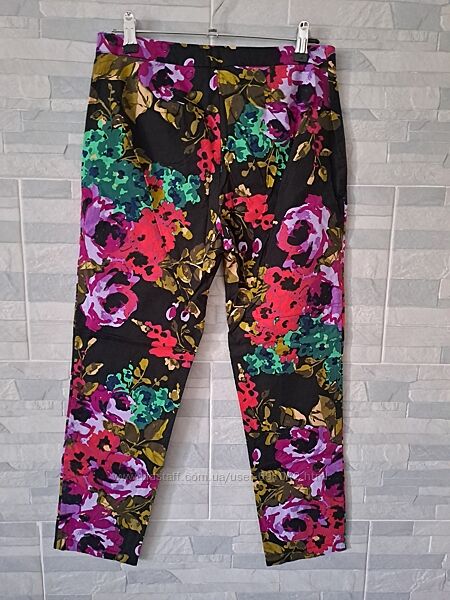 Тонкие летние брюки в цветочный принт, застегиваются сбоку на молнию.ПОТ - 37 см.