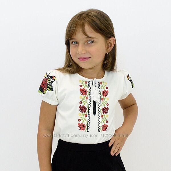 Подробное описание: Вишиванка з коротким рукавом для дівчинки, зріст від 98 см до 146 см