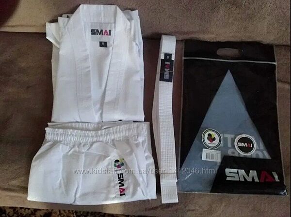 Кімоно для карате Smai з ліцензією WKF - відмінно підійде для спортсменів рівня-початківця. Зроблено з міцного матеріалу – бавовна 10%, поліестер 90%. Кімоно може регулярно пратися, при цьому колір не тьмяніє. Куртка має додаткову вставку із тканини на задній частині шиї для поглинання поту. Має додаткове посилення на шиї. у вигляді пяти рядів рядків. Штани на високій талії, мають гумку та шнурок.Розмір - 0 (130). УВАГА! Кімоно великомірять на 10см, тобто буде добре на зріст 140.