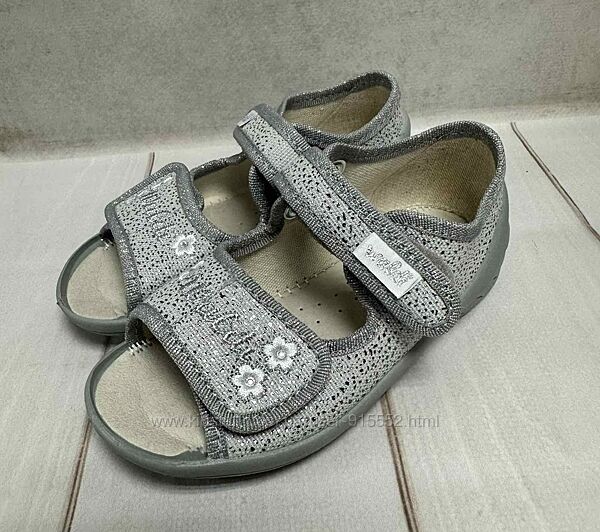 Подробное описание: Дитячі тапочки на дівчинку текстильні Waldi Єва для садка сірі квіти 24-30
