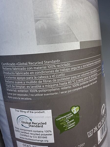 Підходить для прання в машині при температурі до 40°C і сушіння в сушильній машині.Виготовлена зі 100% переробленого матеріалу, наповнення — 100% перероблений поліестер.