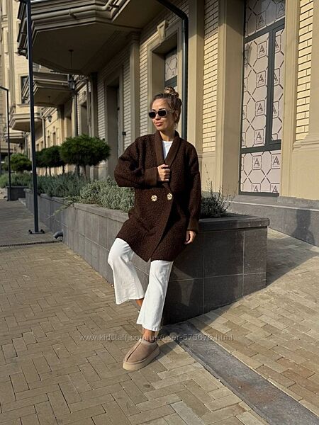 Кардиган вільного крою, застібається на гудзики. Края виробу не оброблені. Легкий та теплий. Ідеально на осінь