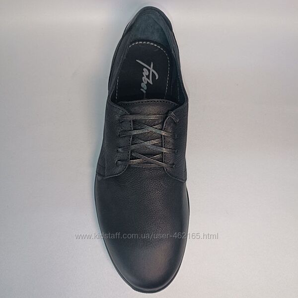 Стильні та модні туфлі Faber чорного кольору. Менш офіційні, стилю “комфорт”. Мають стандартну шнурівку та европейський дизайн, за стилем більше підходять для щоденних прогулянок містом. Виготовлені з натуральної шкіри, всередині натуральний яловичий підклад, устілка – шкіра.Відтінки товару можуть відрізнятися від реального через індивідуальні налаштування Вашого монітора!