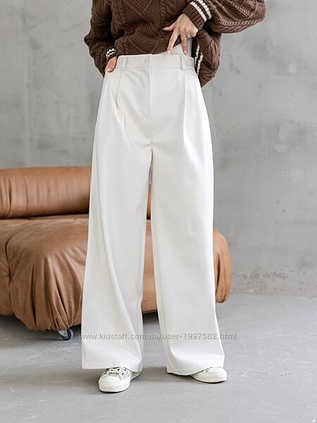Інші штани, лосини нашого магазину, Ви можете подивитися за цим посиланням: https://www.kidstaff.com.ua/user-anno-1997582/sect...Класичні шкіряні штани палацо з ідеальною посадкою. Виконані з дуже якісного матеріалу - еко шкіра на замшевій основі і металевою блискавкою