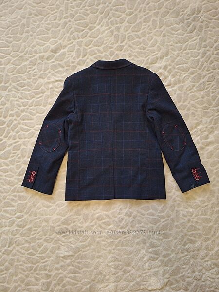 Синій піджак Next. Розмір 122, 7 років. Заміри: плечі29 см, довжина рукава 44,5 см, ширина під руками 35 см, довжина по спинці 47см. Ціна 50 грн.