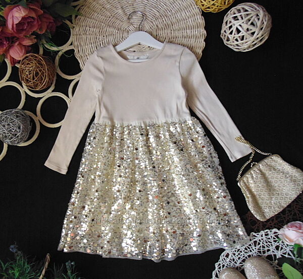Шикарна золотиста сукня H&M на 4-6 років,зріст 104-116 см