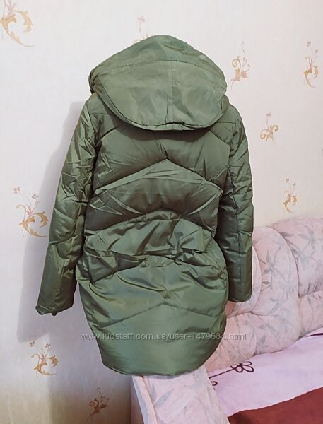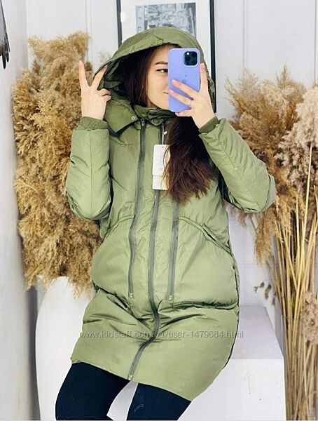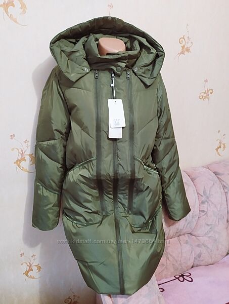 Стильна тепла подовжена зимова куртка, фабричний Китай, р. Ххл,, йде на наш 44-46р.(р.С- М) Дивіться заміри, ваші об,єми повинні бути меньше! Куртка на холофайдері,з капюшоном,колір - оливковий, прошивка трендова, якість гарна. Розмір ХХЛДовжина- 85 см