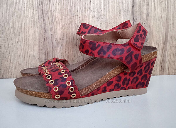 Подробное описание: Нові нубукові жіночі босоніжки червоні з чорним на танкетці і липучках, 37