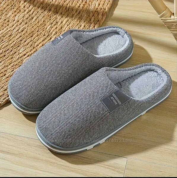 Затишні чоловічі тапочки — ідеальний вибір для дому в холодну пору року.Вони виконані з якісного матеріалу з зовнішнім стильним візерунком «ялинка» та м’яким хутром усередині, що надійно зберігає тепло.
