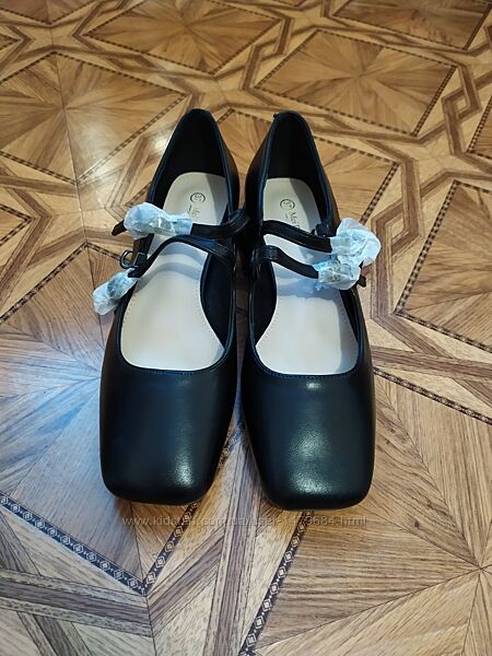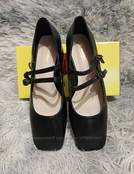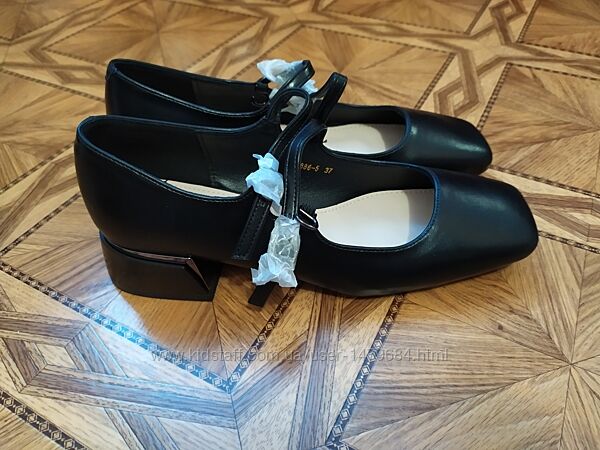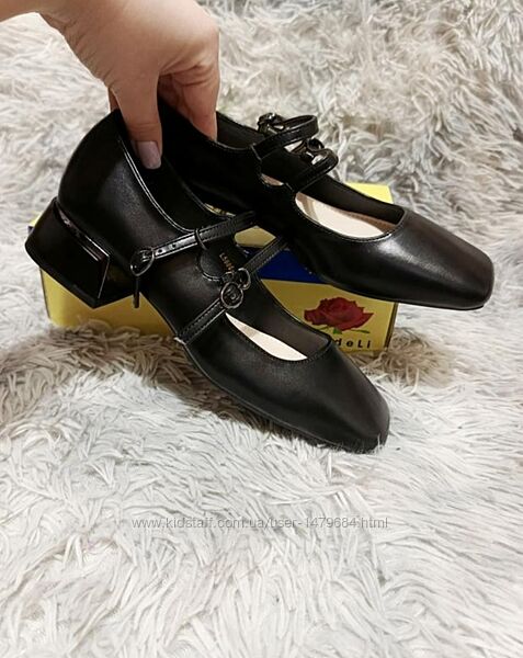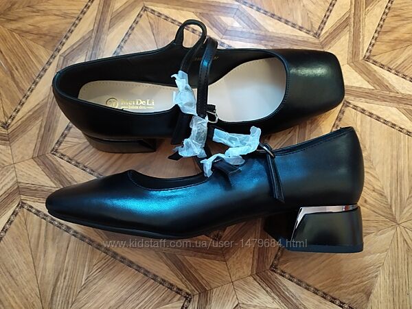 Туфлі жіночі чорні з ремінцем,Meideli, фабричний Китай,р.37 устілка - 24см, якісна еко-шкіра, каблук - 3,6 см, спереді ремінці,які легко защіпати. Сезон- осінь,весна,літо.Туфлі зручні , гарно виглядають,йдуть на худу та середню ніжку.