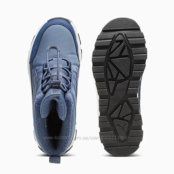 Puma Evolve — це нова колекція для дітей. Завдяки численним силуетам, створеним для активного способу життя та різних пір року, ці черевики витримають будь-які пригоди дитини протягом усього дня як під час ігор, так і відпочинку, а також підходять для будь-яких видів активності в холодну погоду. Це стильне зимове взуття з водовідштовхувальним верхом, розробленим для динамічного й активного способу життя. Воно оснащене еластичними шнурками й застібкою-липучкою для ідеальної посадки. Крім того, черевики мають міцну гумову підошву.