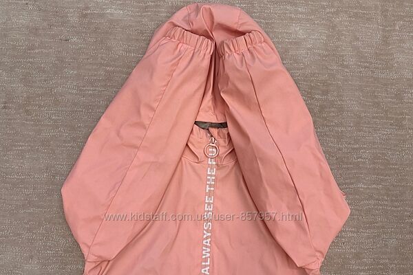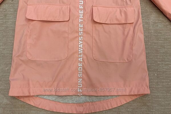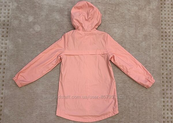 Куртка демісезонна подовжена ( вітровка, плащ, дощовик ) від "Reserved" 152 розміру по бірці, гарної якості у відмінному стані без видимих слідів носіння. Доня вдягнула пару разів. Верхня тканина прорезинена, підкладка котонова, є капюшон, 2 кишені. Колір пудровий.Довжина по спині - 75 см, довжина спереду - 70 см, ширина у плечах - 38 см, ширина під рукавами 45 см, рукав від плеча - 57 см.
