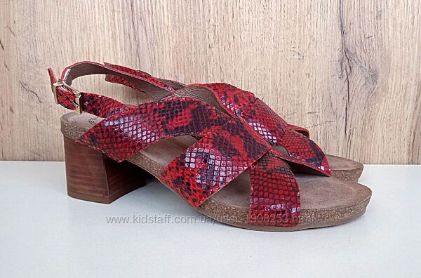 Нові шкіряні босоніжки жіночі червоні на вузьку ногу, зміїний принт літо 37