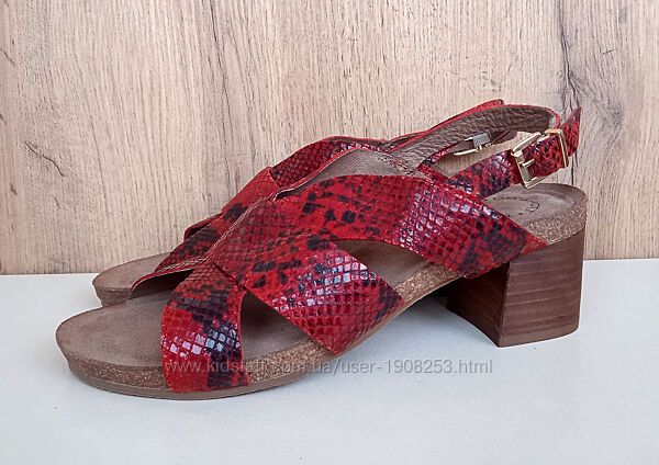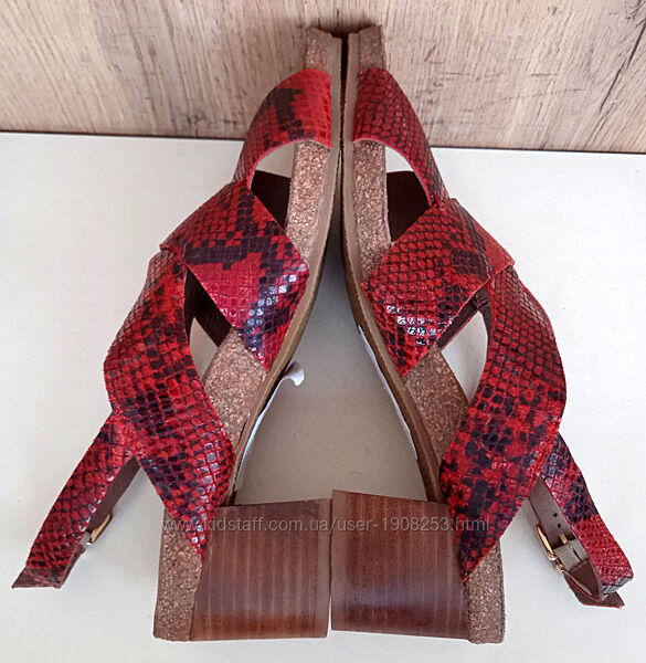Подробное описание: Нові шкіряні босоніжки жіночі червоні на вузьку ногу, зміїний принт літо 37