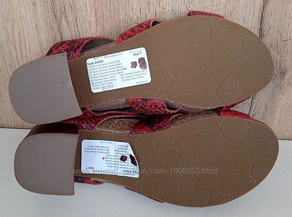 Стан: нові (сток з Німеччини, без етикетки, є бірка на нижній поверхні підошви). Функціональні пошкодження чи дефекти відсутні. Причина потрапляння в сток: невеликі нерівномірності кольору підборів, малопомітні, особливо коли босоніжки на ногах. Також можлива легка запиленість устілок, нічого критичного. Стан на фото.
