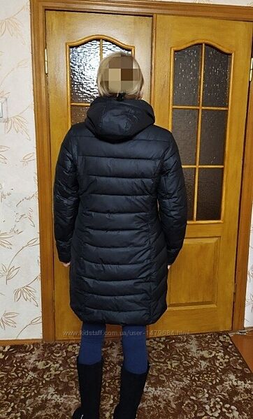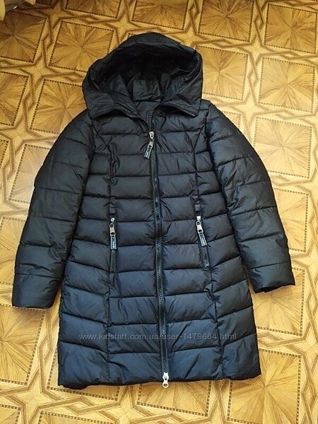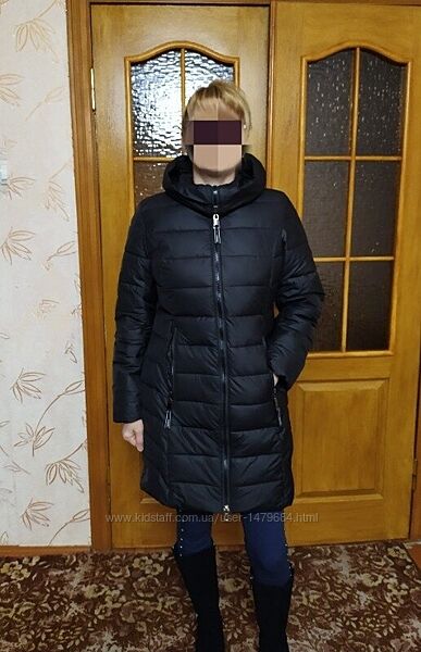 Жіноча зимова куртка пуховик з каюшоном, фабричний Китай ,вказаний р. М, йде на меньше, десь р.С. Колір чорний. Куртка пуховик, тепла, але не важка, зручна,гарно сідає по фігурі. Тканина водо-вітро- непроникна. Утеплювач -"Cotton down" перекладається як бавовняний пух або синтетичний пух. Це інноваційний наповнювач для одягу, що імітує натуральний пух. Куртка без бірок, примірялась, але стан нової. Якість чудова. Розмір МДовжина- 84 см