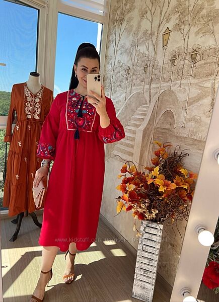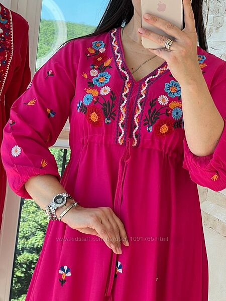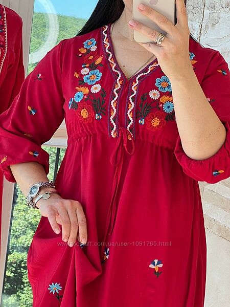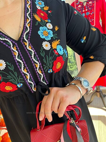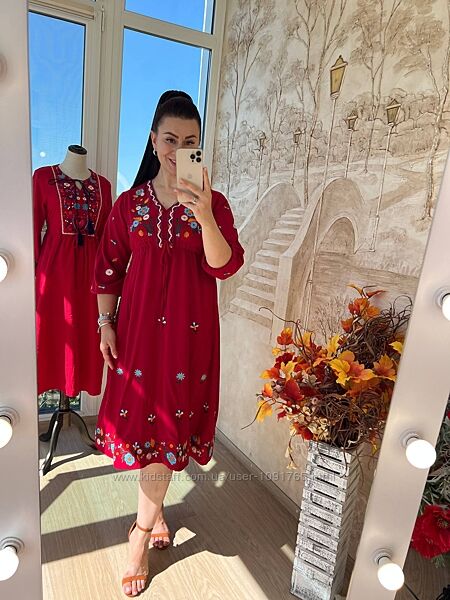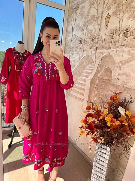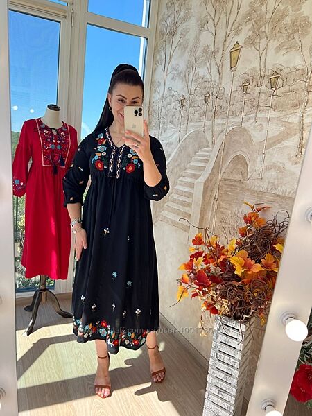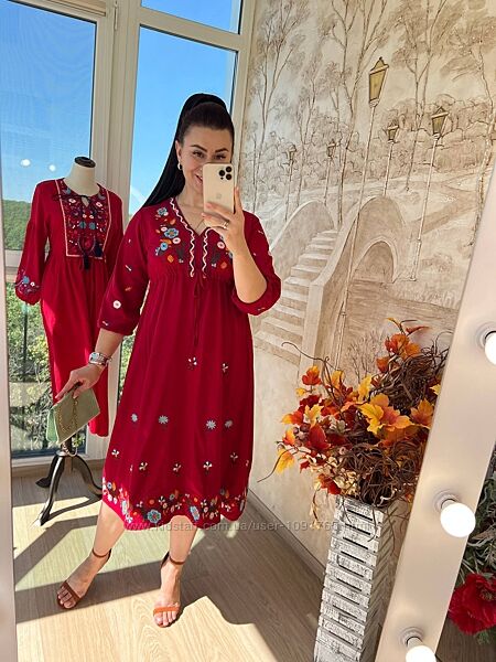 легкого і дихаючого котону в насичених тонах, прикрашених багатою квітковою вишивкою, вона ідеально підходить для теплого сезону, повсякденного носіння і теплих зустрічей у колі близьких, носиться вільно, не сковує, а виглядає ошатно і по-доброму