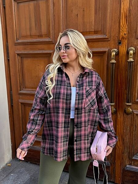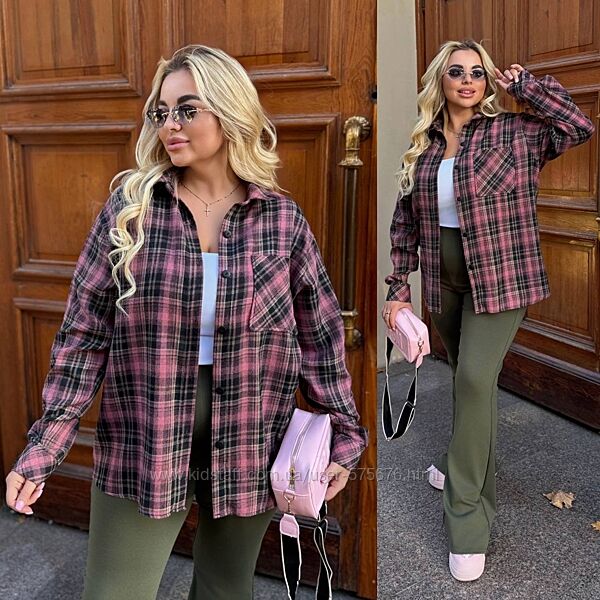 р.50 до 60р. Стильна сорочка в клітинку з мякої фланелі
