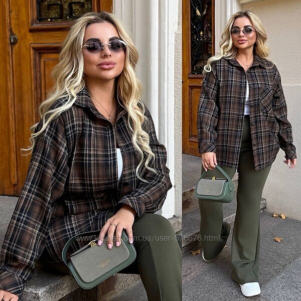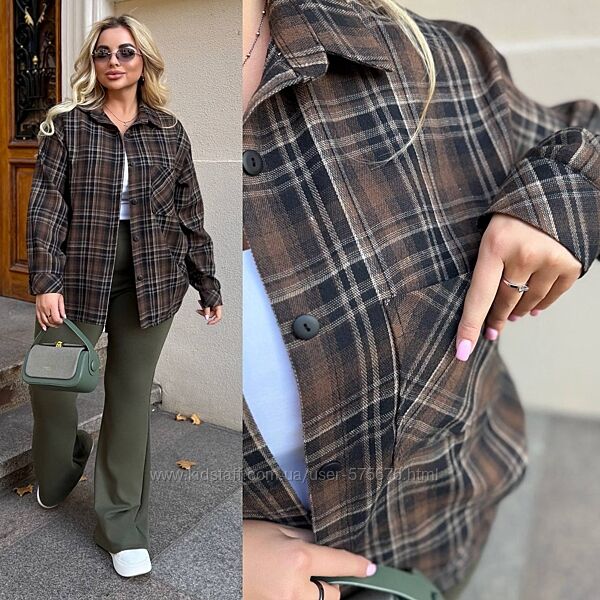 Подробное описание: р.50 до 60р. Стильна сорочка в клітинку з мякої фланелі