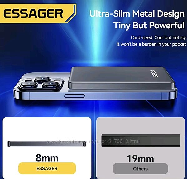 Подробное описание: Зовнішній магнітний акумулятор ESSAGER 5000mAh Magnetic Power Bank