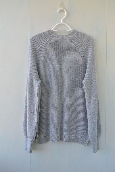 Вовняний светр marks & spencer вільного крою, цікаве в´язання. Цікава кругла горловина, вона прикрашена металізованою ниткою. З боків єрозрізи. Спинка трохи довша. Він досить теплий, у складі 20% альпаки.