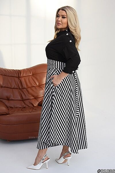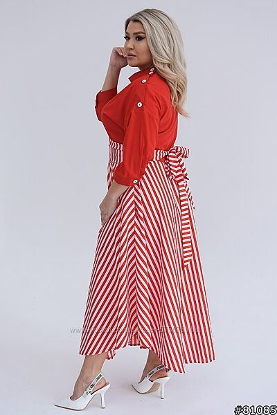 Крутезна Сукня міді, підкреслює талію за рахунок оригінального ремінця на завʼязці, верхня частина у вигляді сорочки, має діючі ґудзики від вороту на боковій частині плеча. Можна носити у різних варіаціях: із розчіпленими ґудзиками чи застібнутими.