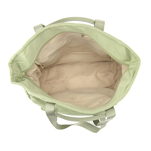 Жіноча текстильна сумка 76042GR колір хакі. Розміри: 28 x 17 x 35 см.Має одне основне відділення на блискавці, усередині якого розташовані невеликі кишеньки для дрібних предметів.Із зовнішнього лицьового боку також є додаткова кишеня на змійці.По обидва торцеві сторони виробу є кишеньки слоти відкритого типу.
