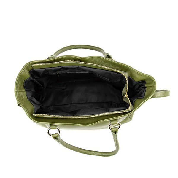 Повсякденна жіноча сумка класична з натуральної шкіри колір оливковийОсобливості: розмір 34 x 27 x 14Матеріал: натуральна шкіраСумка має одне основне відділення, яке закривається на блискавку.Усередині розташована кишеня на блискавці.У комплекті довгий шкіряний наплічний ремінець, який регулюється по довжині й кріпиться за допомогою карабінів.