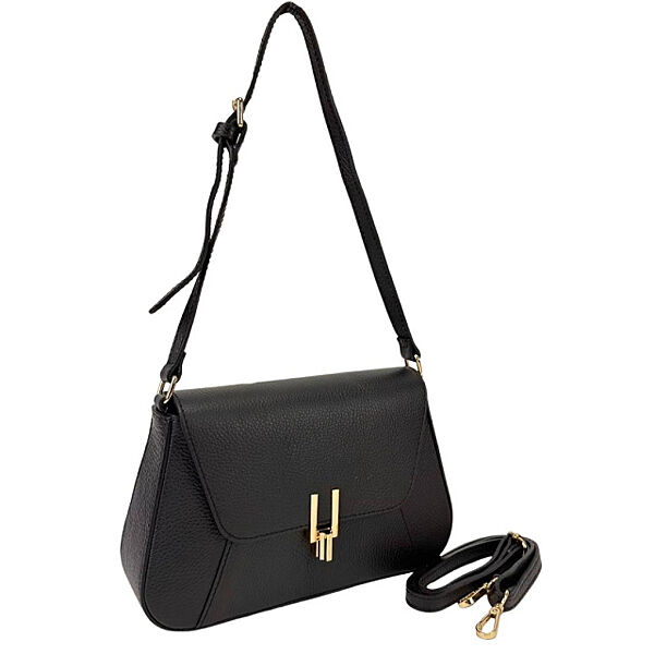 Стильне жіноче шкіряне кроссбоді чорне Італія 76644A
