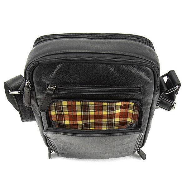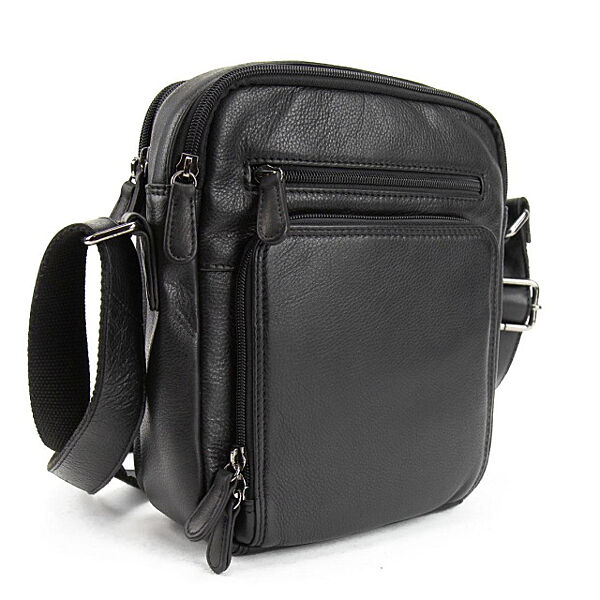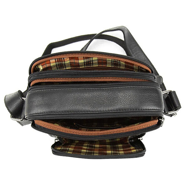 Шкіряна сумка через плече в чорному кольор на три відділи 71730A