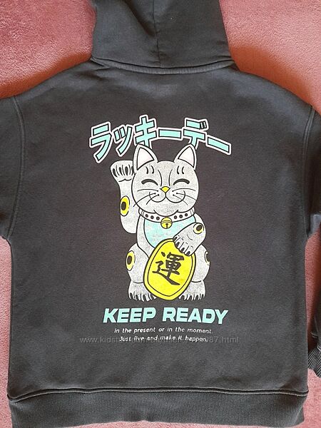 тепле чорне худі з капюшоном від Зара на 11-12 років зріст 152 см. Без кишень,рукав приспущений. Довжина 55 см. На малюнку зображено Манекі-неко – японський кіт, що приносить удачу.Другие объявления продавца
