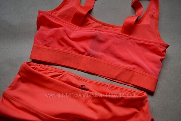 Комплект Crivit для спортзала, бега, йоги, пилатеса, фитнеса. Известный производитель спортивной одежды. Размер указан М 40/42 евро, на наш 46. Может подойти и на S, смотрите внимательно замеры! Ткань 92% полиэстер, 8% эластан. Замеры:Топ ширина под бюстом в спокойном состоянии 32 см. Тянется