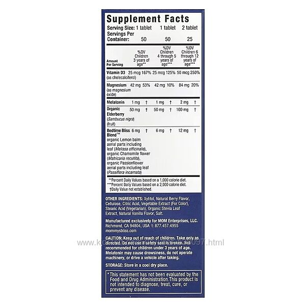 Подробное описание: Mommy´s Bliss Детские жевательные таблетки для сна мелатонин. 50 т.